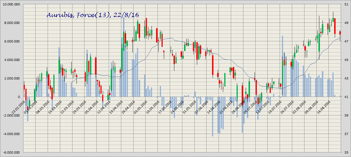 Aurubis deutet sich DoppelTop an Elders Force(13) mit neg. Divergenz
