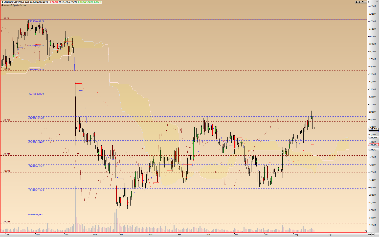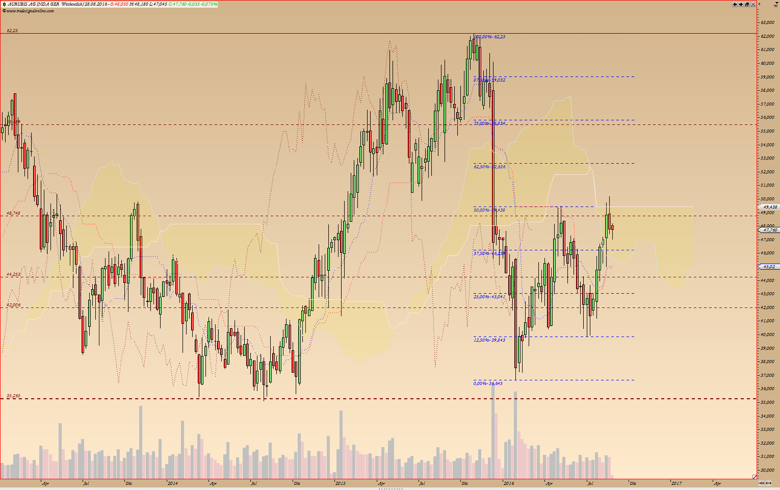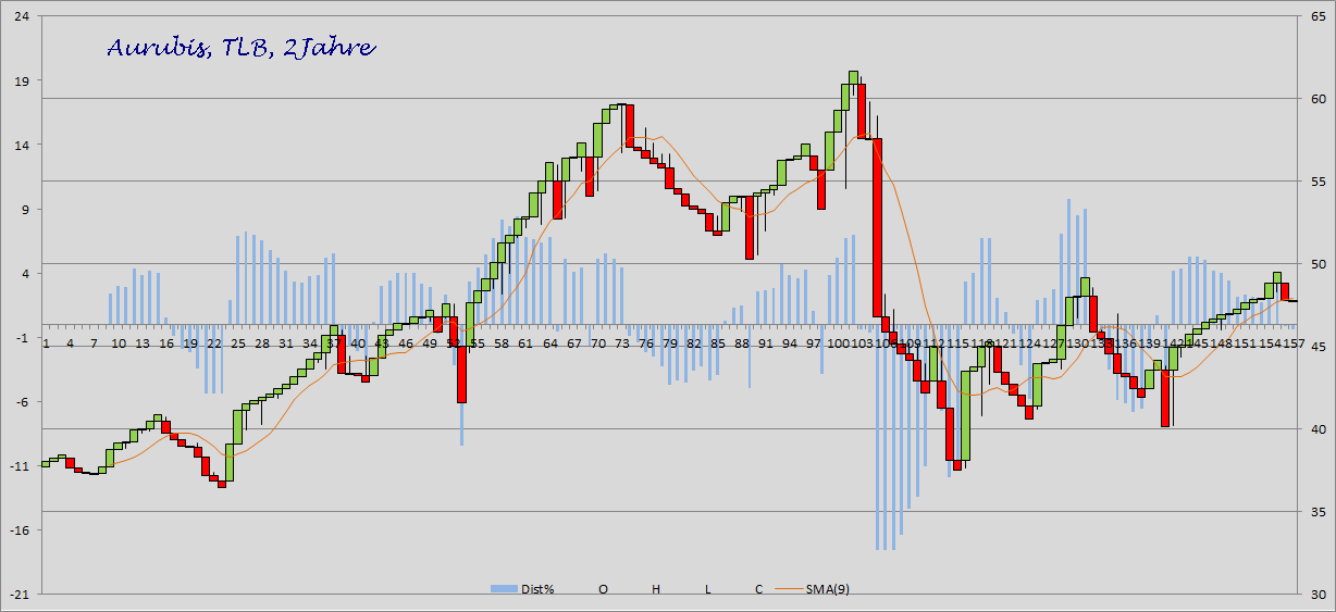 nochmal Aurubis hier das 2-Jahresbi­ld, es ist grob eine Range zw 40 und 50 erkennbar.­ "Doppeltop­" muss ja jetzt nicht bedeuten, dass die 50 für alle Zeit festgenage­lt ist.