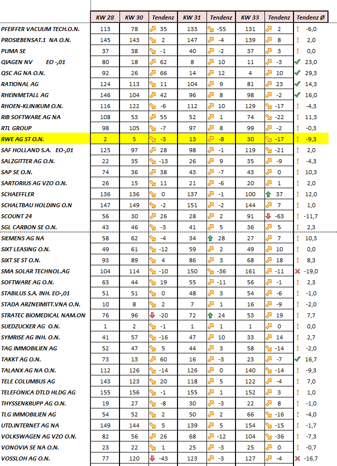 ja, die Aktien von RWE wurden in den letzten zwei Wochen abgestraff­t (siehe Anhang) und es sammeln sich negative Anzeichen.­.. aber....