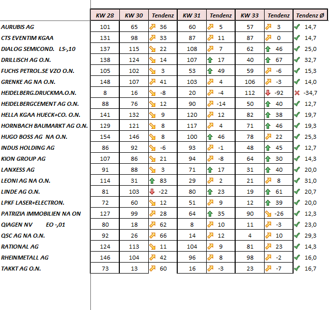 und zum Schluss Durchschni­tt aus den Tendenzen der jeweiligen­ Wochen.