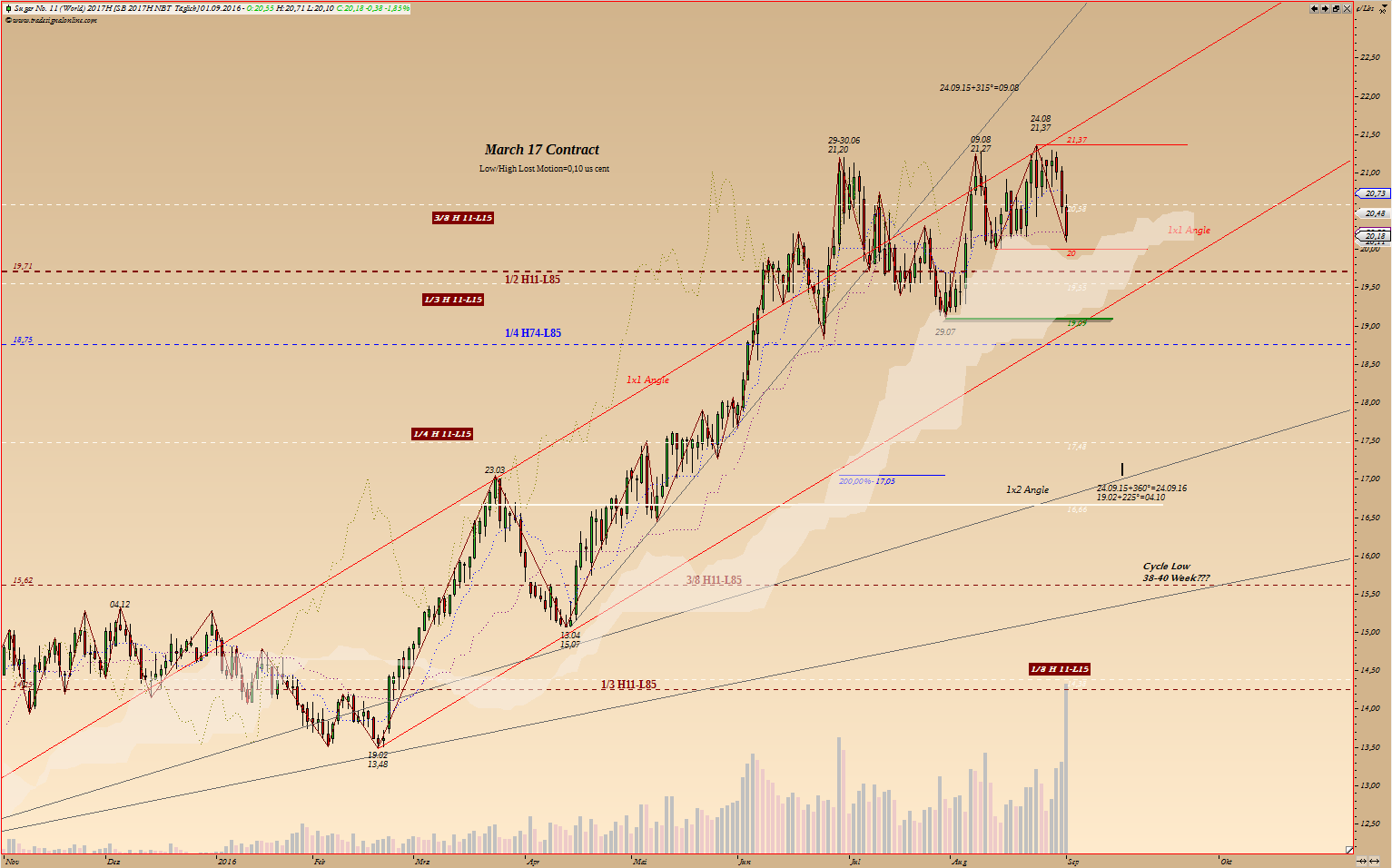 Winkellinien, die Gann zu seiner Zeit berechnet hat, stimmen nicht mehr. Kann mich aber täuschen. Musste daher dem Gann wiedersprechen und meine eigene reingesetzt. Und jetzt ist es klar warum an bestimmten Punkten zur Trendwende kam.