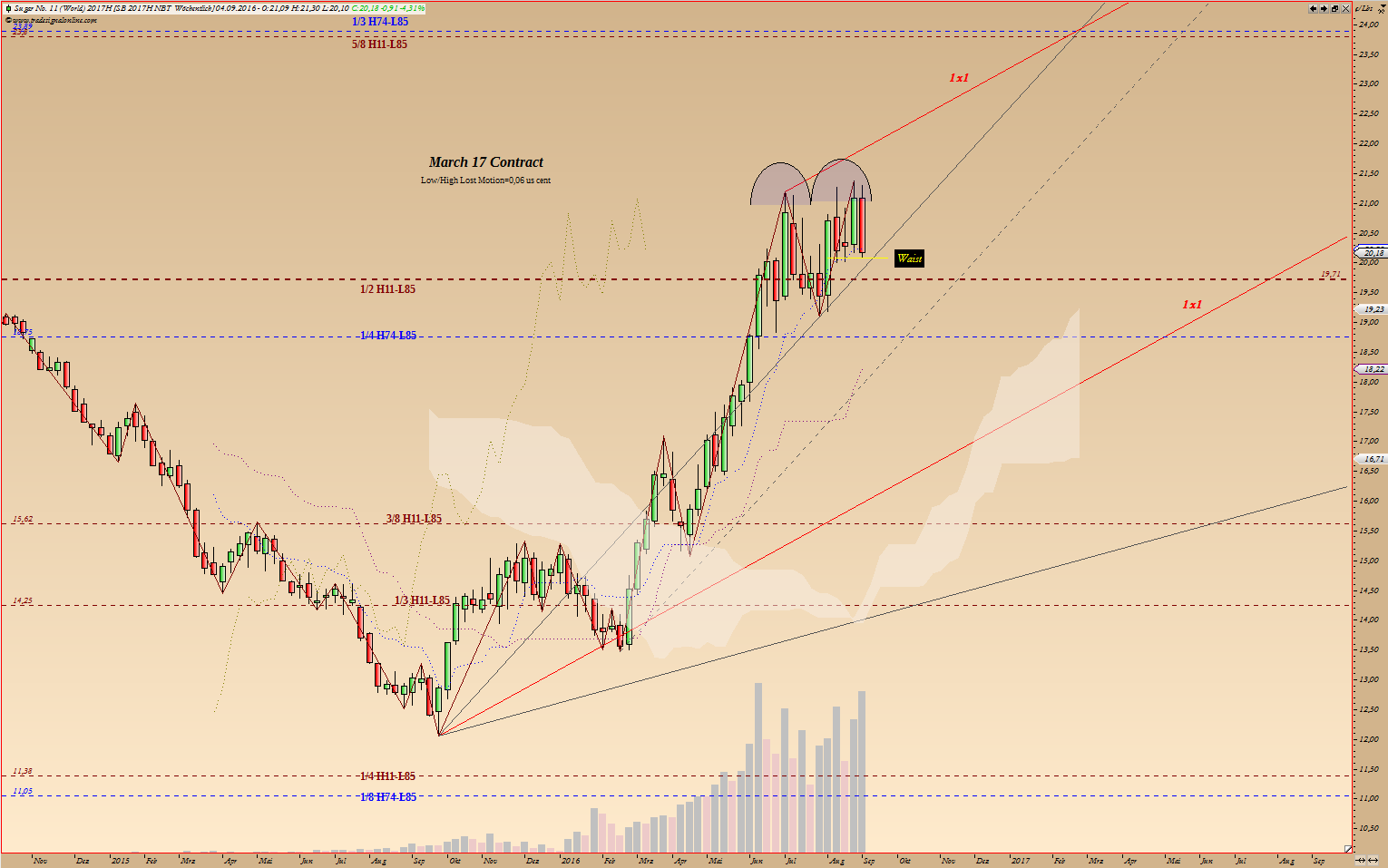 Entgültiger Doppeltop unter 19,10 US Cent, März 17 Kontrakt.