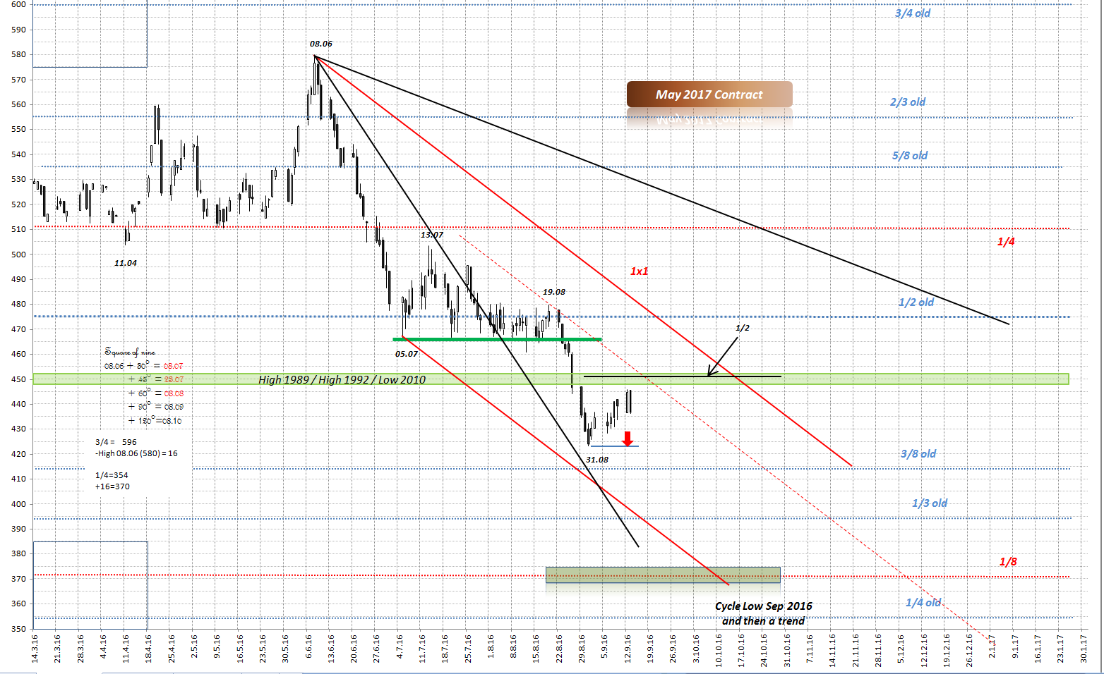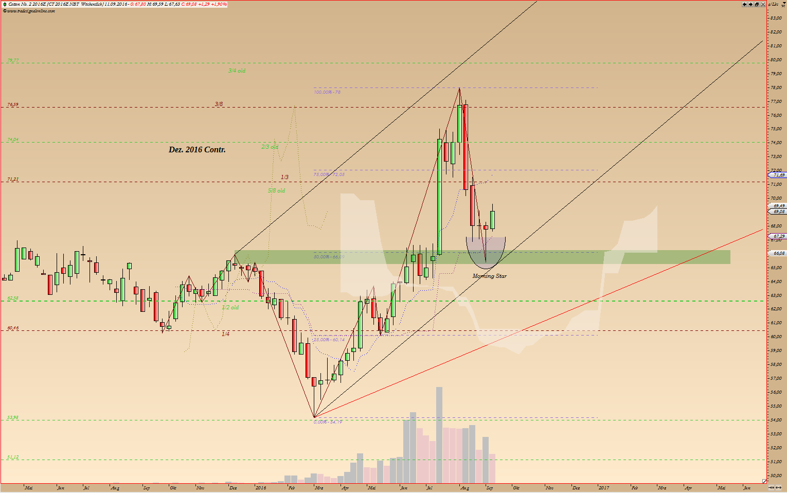 V-Boden beginnt meistens bei Weizen mit der ersten großen, weißen Kerze, welche am besten 5 vorherige negative Tage überdeckt. Das war bei Weizen am 31.08, bzw. 01.09 nicht.