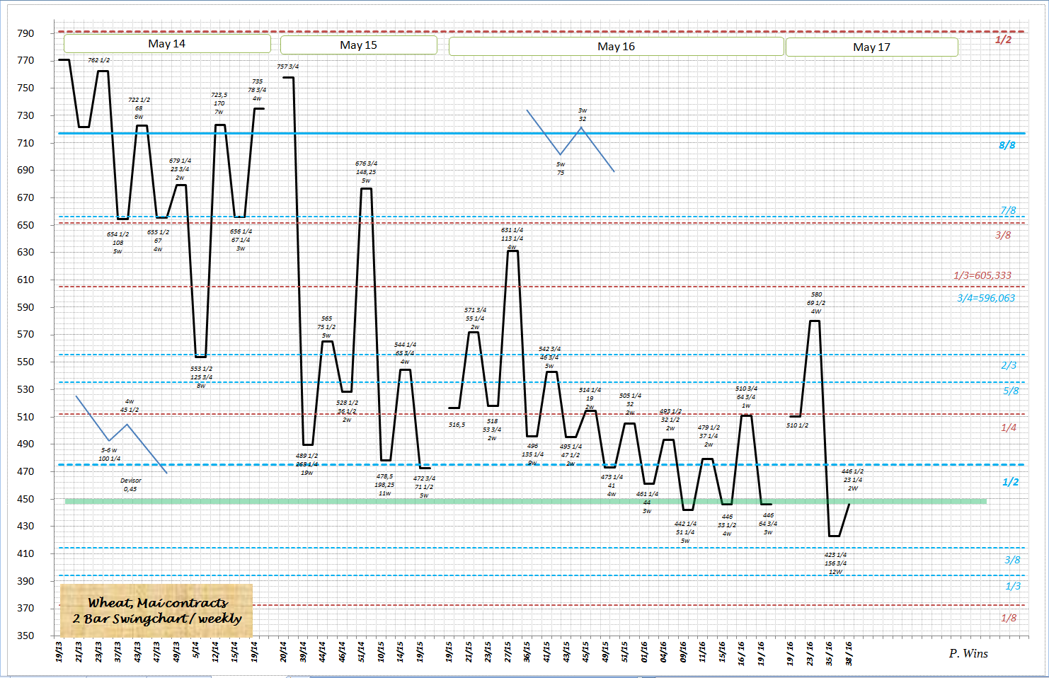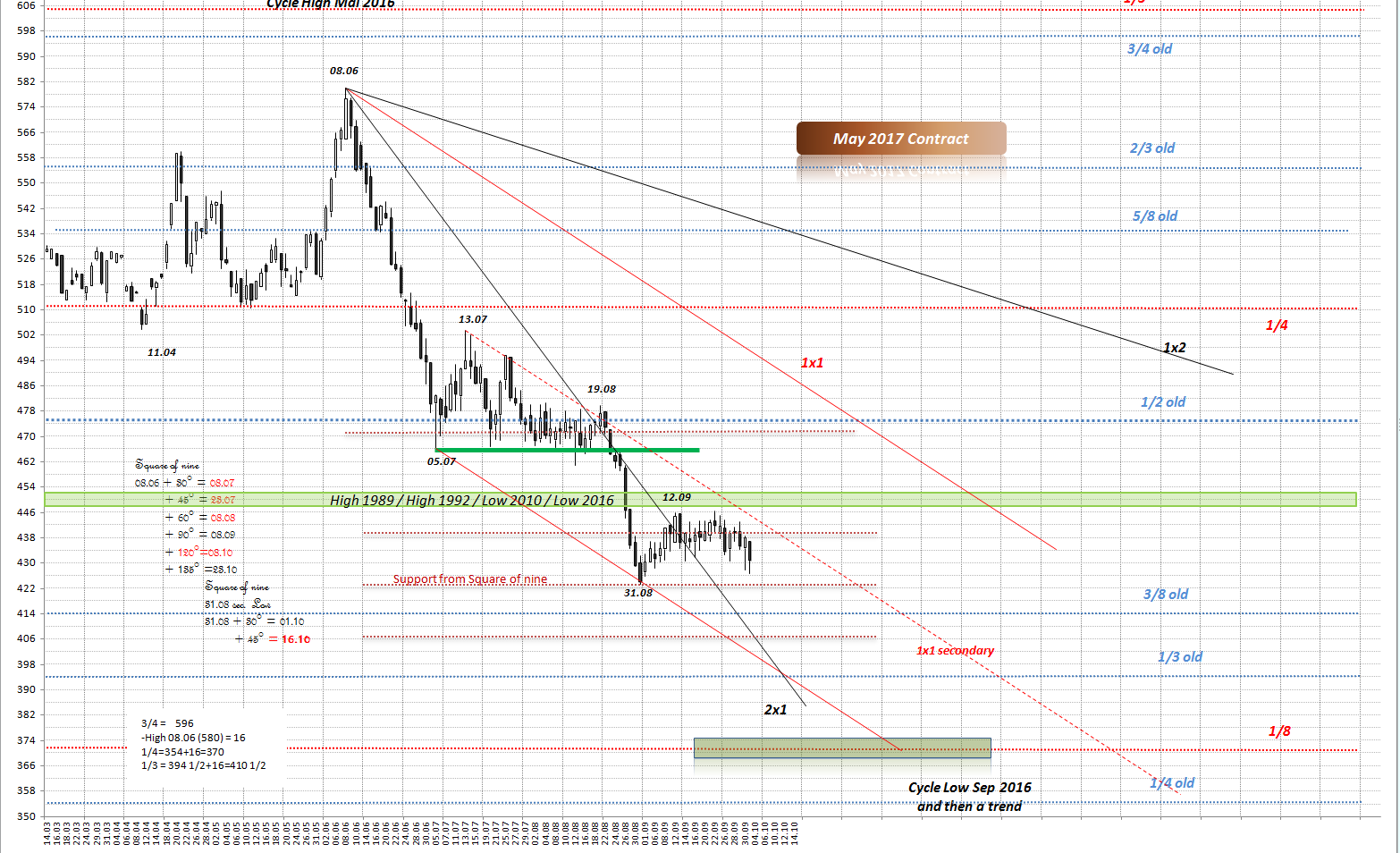 Ich habe noch mit Square of nine - Analyse des Preiszyklen ermittelt. Am 31.08 schloss Weizenpreis Zyklus ab, ohne weitere Ziele nach unten zu aktivieren.