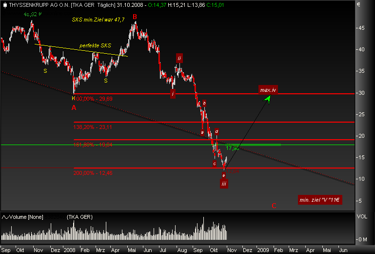 Zwar ist das Gj bei TK bereits am 30.09.2008 beendet, aber handfeste Zahlen für das Gj 2007/08 liegen nicht vor. Es wurde lediglich kolportiert, dass das Ergebnis im letzten Quartal wohl nicht so überragend gewesen sei. Und wie die Dividende für das gerade begonnene Gj ausfallen wird, weiß bei der wohl sich abzeichnenden Rezession nun wirklich keiner seriös zu sagen!