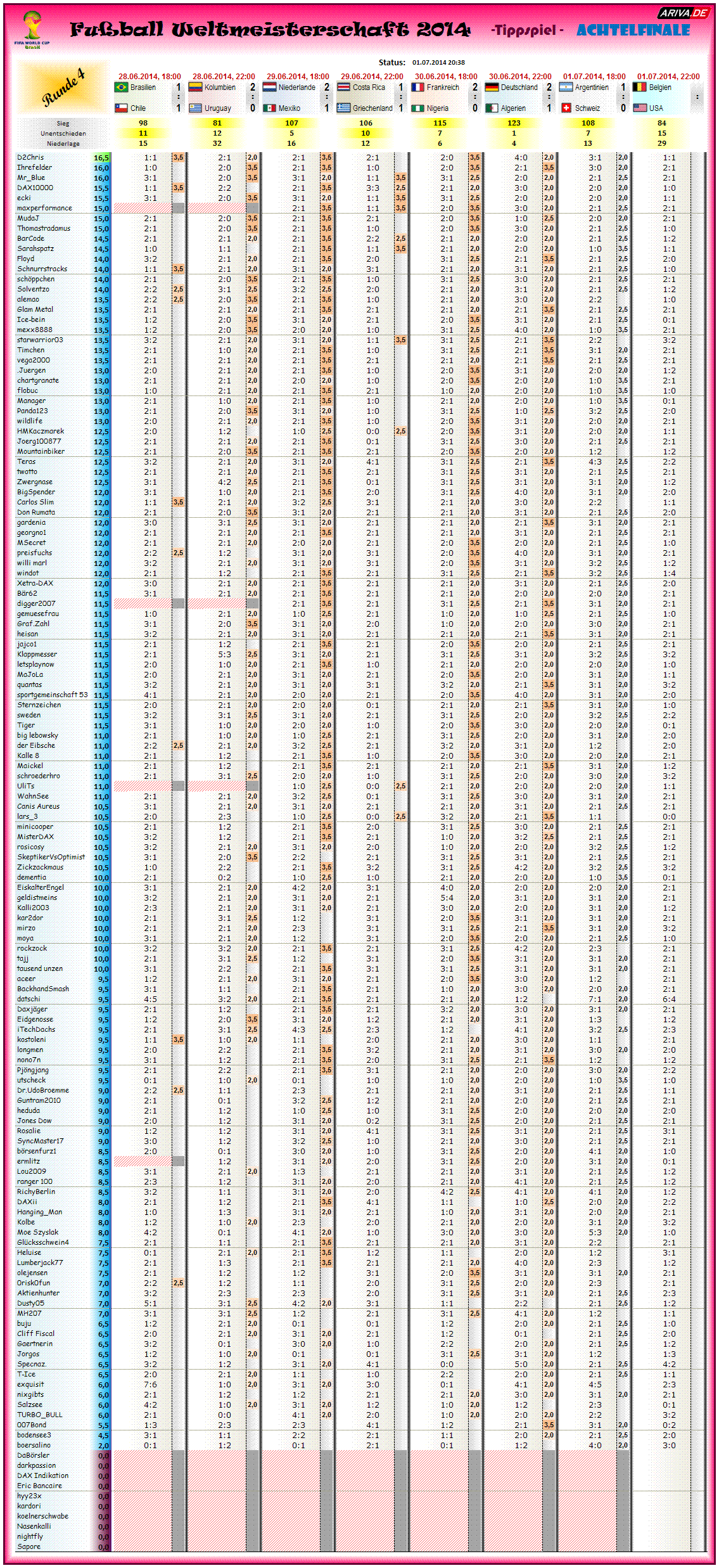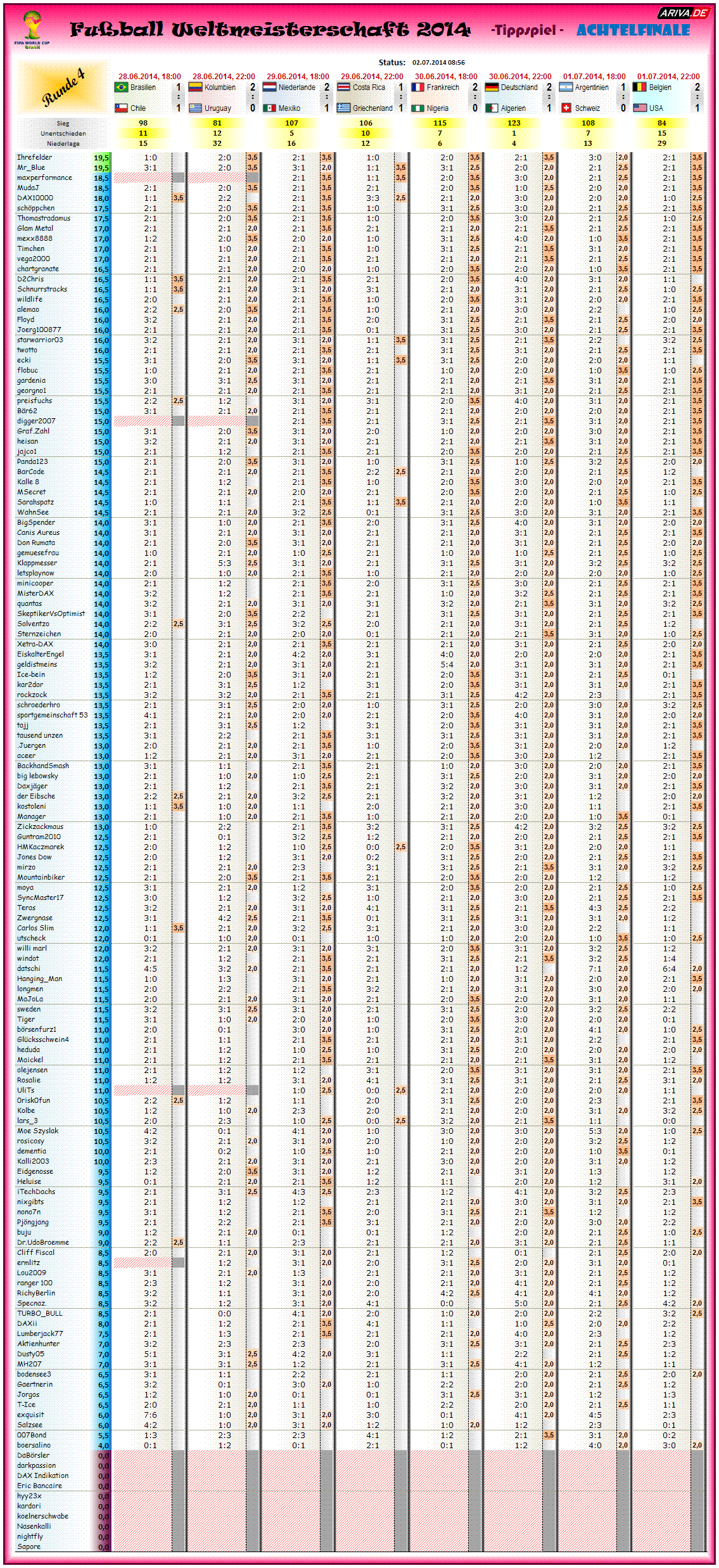 Tippspiel WM2014, Achtelfinale
