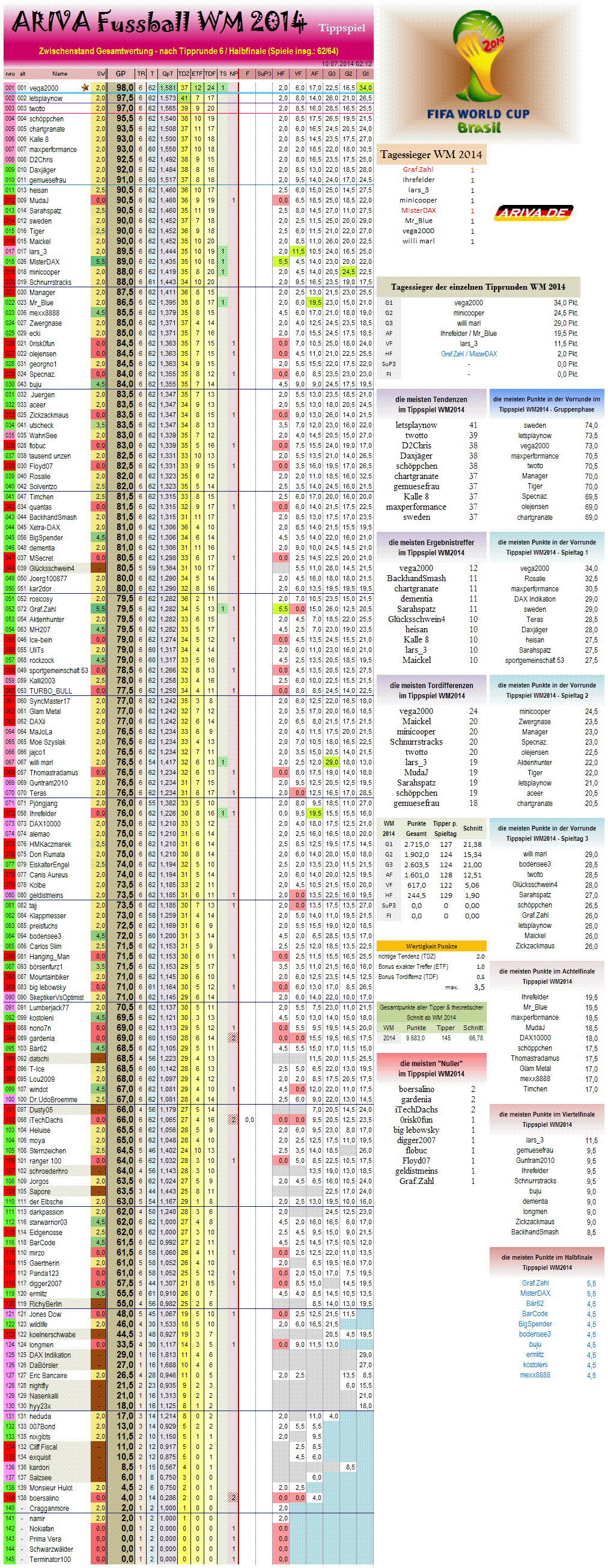 Zwischenstand Gesamtwertung WM Tippspiel.. (62/64)