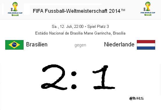 2:1 Brasilien - Niederlande (Sa., 12.07.2014, 22:00, Brasilia)