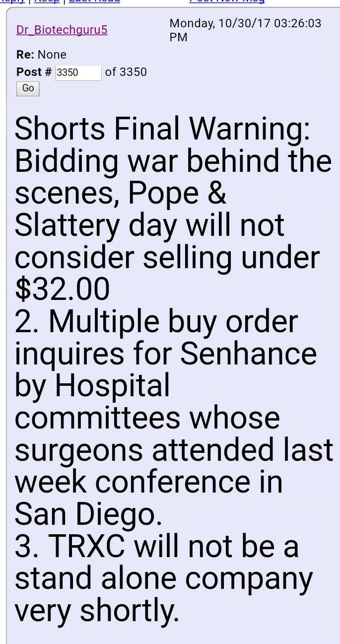 Der folgende Artikel hat den Kurs jedenfalls kurzfristig ziemlich absacken lassen, https://seekingalpha.com/article/...efit-will-hurt-transenterix-sales