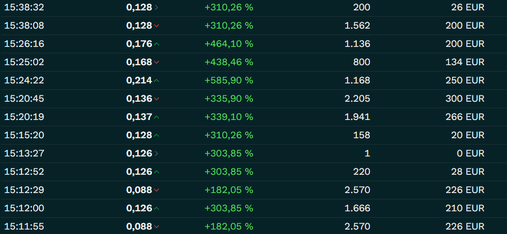 der ""hohe Kurs" um 15:24:22 zu 0,214 waren 250 Euro