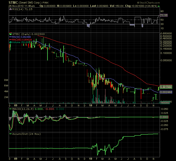 Eine gute Gelegenhei­t sich die letzten 0,005 - 0,0055$ Aktien zu schnappen um auf einem Niveau einzukaufe­n der bis auf ein paar Ausnahmen der Tiefpunkt von STMC bedeuten.