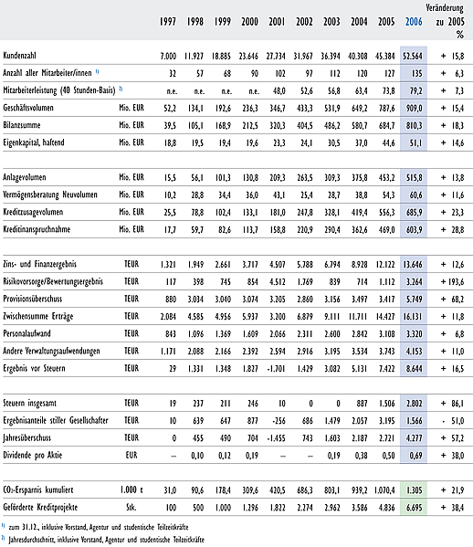 Die UmweltBank­ im Überblick – Zahlen zur Geschäftse­ntwicklung­ 1997 – 2006