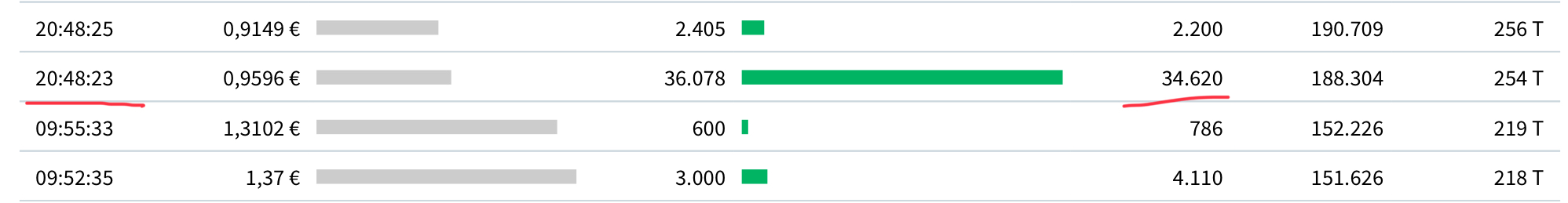 Derjenige der den Trade gemacht hat hat in wenigen Minuten seinen Einsatz fast halbiert, also fast 17k € weg. Super deal!