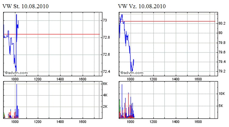 Der damalige 2008er exorbitante Kursverlauf war das Ergebnis einer genialen Falle für die Leerverkäufer**die haben schliesslich einen grossen Teil des 50% Pakets finanziert..mein Tipp..analysiert mal ganz unverbindlich die Porscheaktien..vielleicht ist dort das Kurspotential versteckt das man bei den VW Stämmen vermutet..alle Äusserungen basieren auf meiner ureigensten Einschätzung der momentanen Situation..jeder handelt auf eigene Verantwortung...zum traden ist die Aktie natürlich genausogut geeignet wie jede andere Aktie auch...