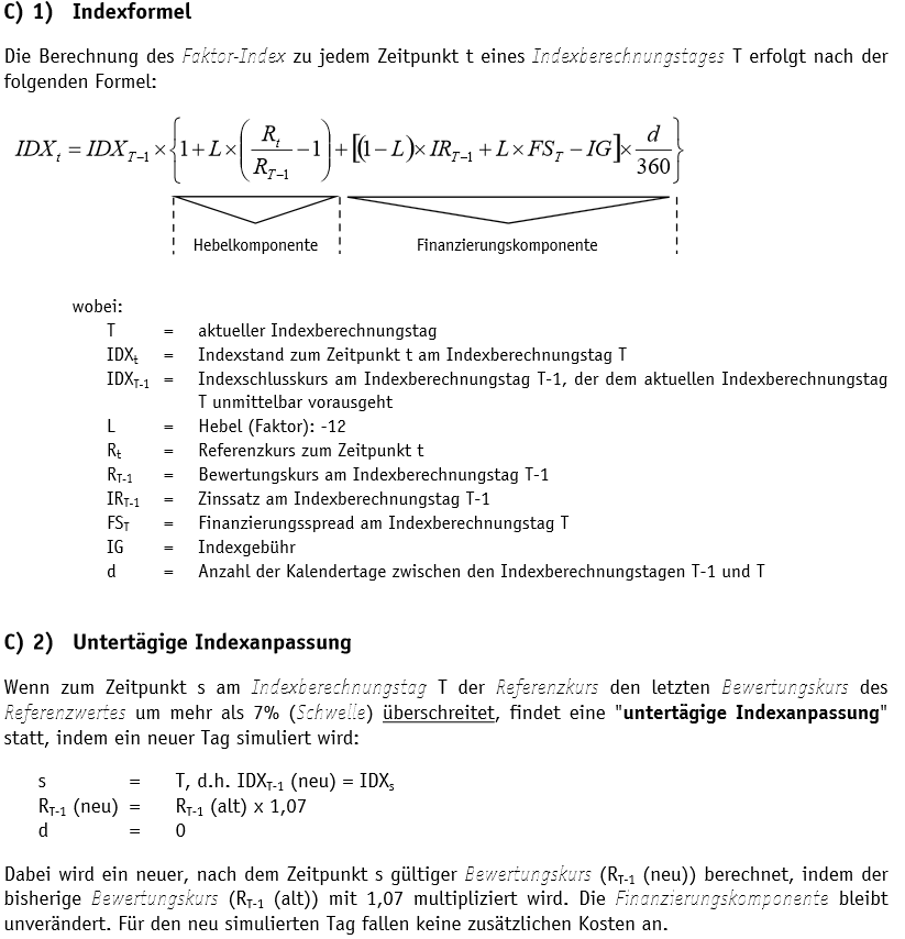 eines Faktorzertifikats immer die Formel des Emittenten. Ergo könnt ihr nicht mal eben so x12 rechnen ;-). Generell gilt immer die Formel und die Geschäftsbedingungen des Emittenten abzgl. Abschlag gerechnet.