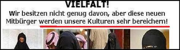 (schon peinlich, wie Du versuchst, den Begriff "Kulturbereicherer" inhaltlich von "diese neuen Mitbürger werden unsere Kultur sehr bereichern" zu verleugnen)