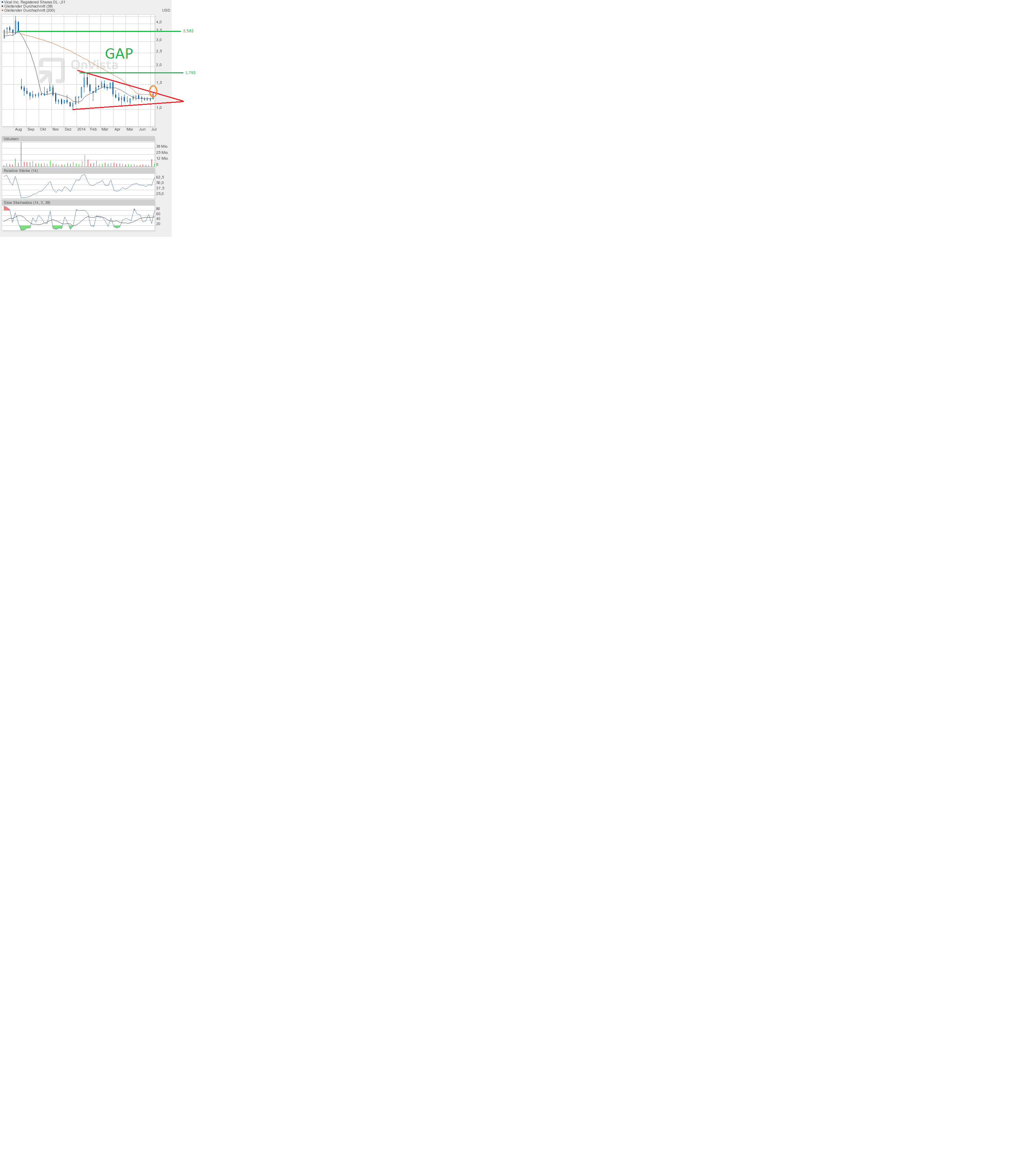 Eingezeichnet ist auch das vorhandene Gap bei 1,79$-3,58$ nach dem Scheitern von Allovectin. Ein Schlusskurs irgendwann über 1,79$ bedeutet gleichzeitig einen anstehenden gewaltigen Kursschub.