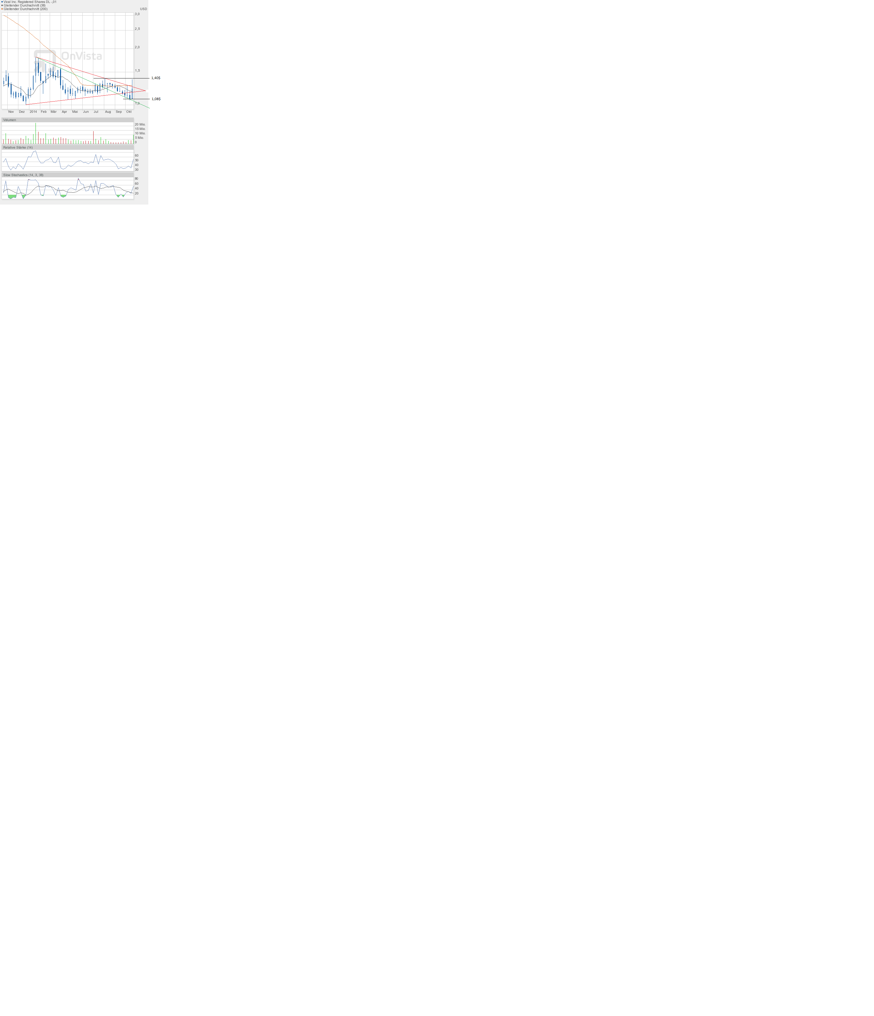 Bei den Quartalszahlen kann man sich auf Vical verlassen. Es wurde erneut bestätigt, dass das Unternehmen sehr gesund durchfinanziert ist. Der Umsatz wurde gegenüber dem Vorjahr mehr als verdoppelt, der Jahres-Cash-Burn wird deutlich geringer ausfallen, als von Vical für 2014 erwartet. Cash-Vermögen noch immer über 51Mio $. Das lässt Einen doch sehr entspannt in die nahe Zukunft blicken.