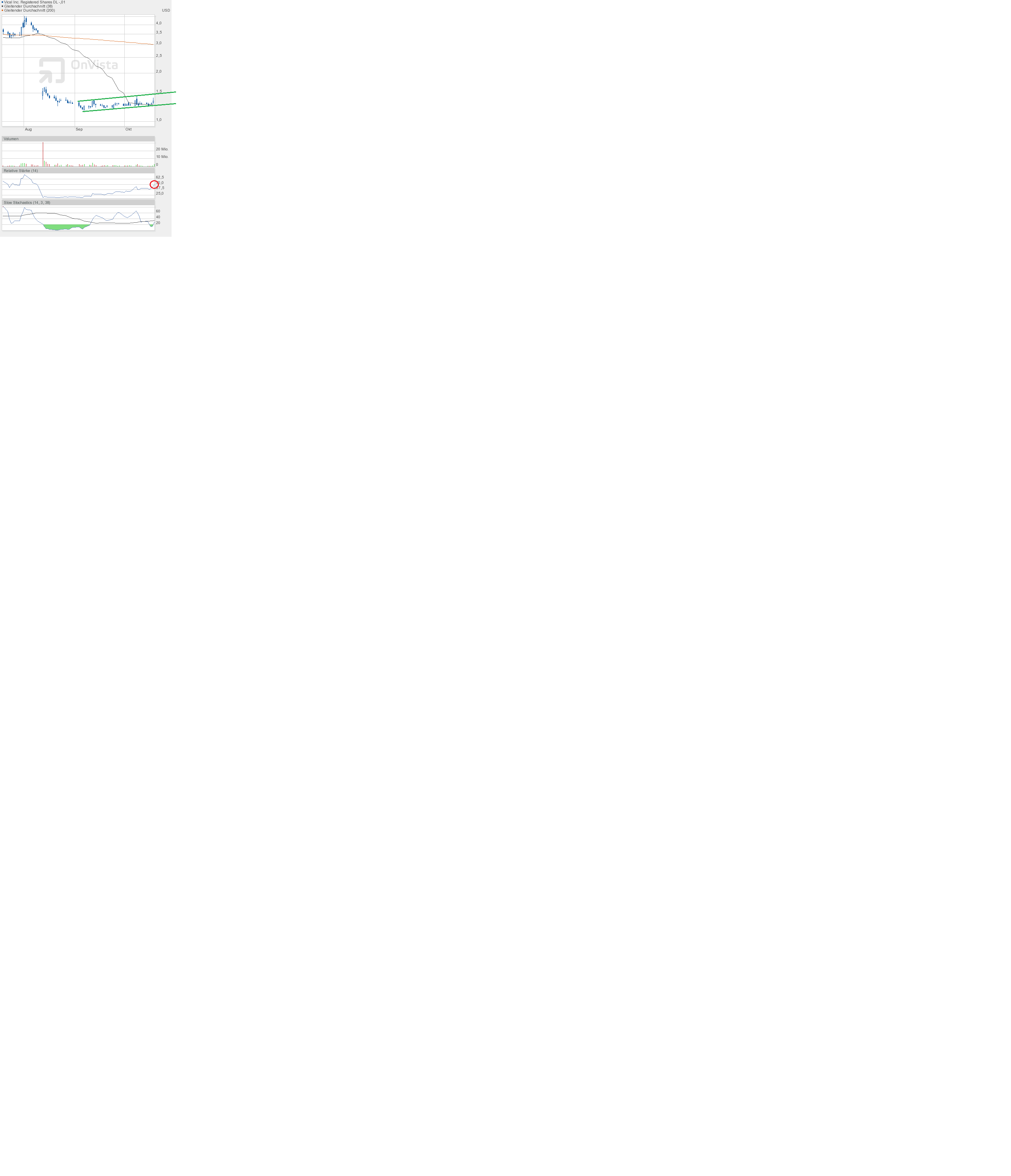 Tagestief und auch Schlusskurs bei 1,40$ bestätigen die ausgemachte Unterstützung. So konnten heute die beiden Indikatoren abkühlen. Ein neuerlicher Kursanstieg wird damit wahrscheinlicher.