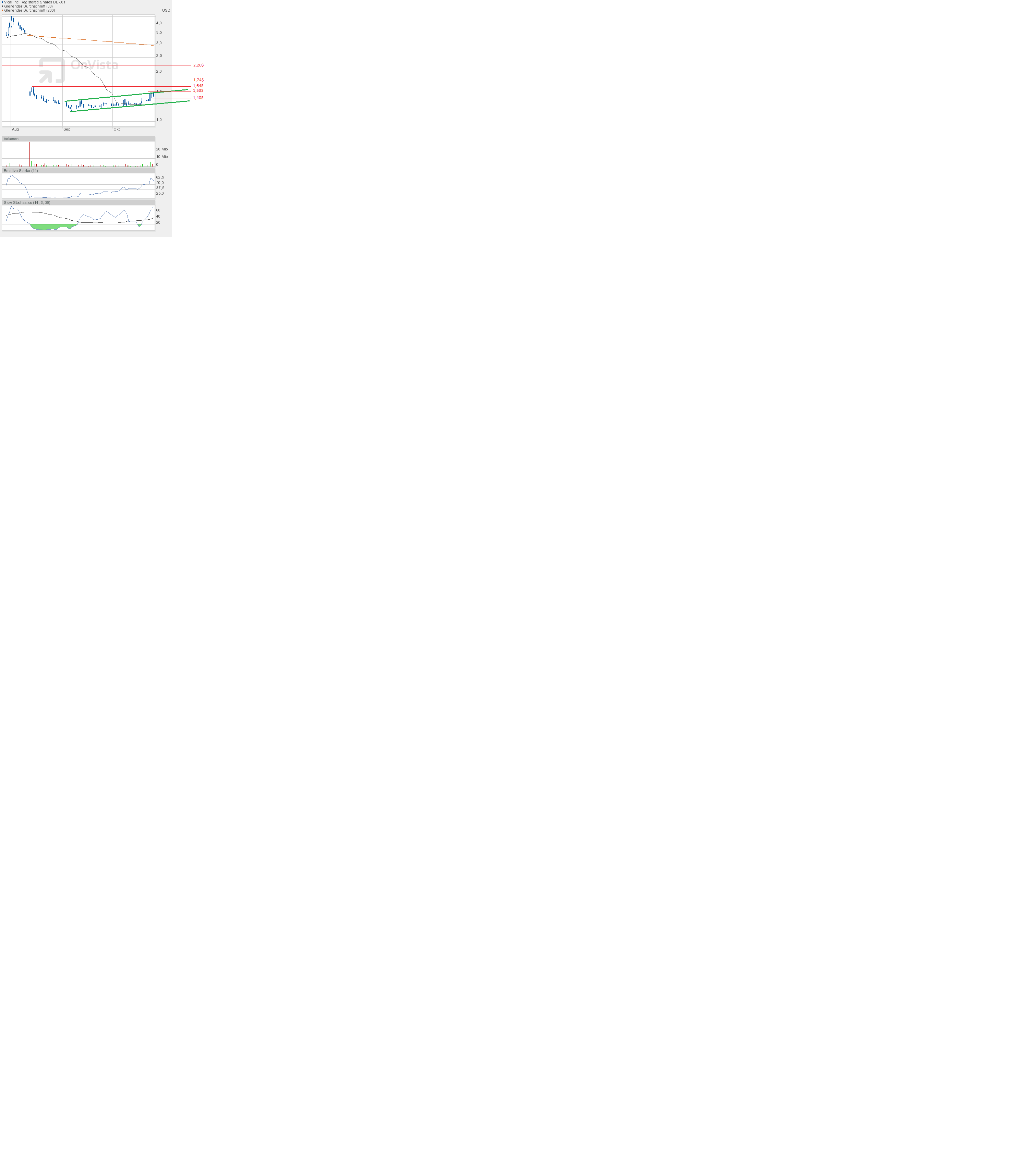 Die Korrektur nach dem 10%-Tag am Mittwoch endete bei 1,40$. Donnerstag und Freitag wurde diese Marke im Tief nicht mehr erreicht. Dann sollte hier eine Unterstützung zu finden sein.