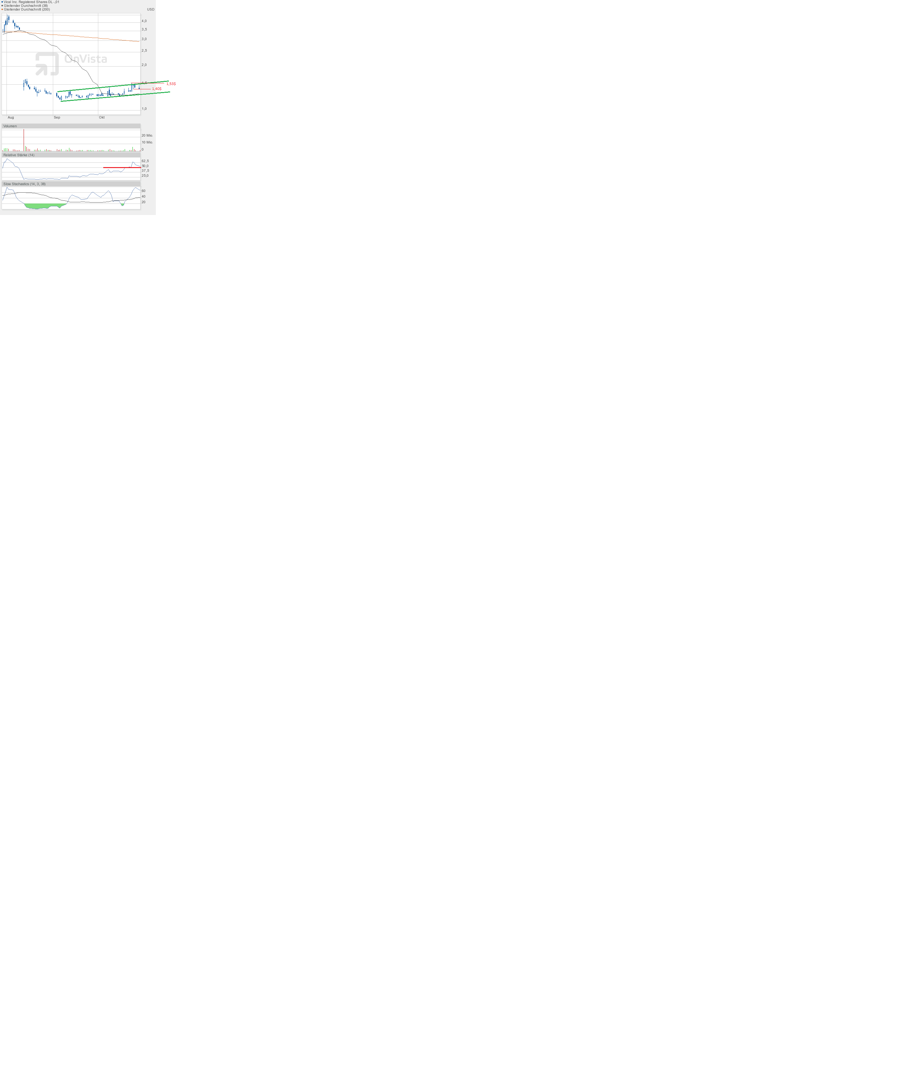 Bereits am Montag ist es gelungen, den RSI über die entscheidende 50er-Marke zu heben. Gestern wurde das neue Kaufsignal per Schlusskurs von 1,35$ bestätigt. Damit sollte die Aufwärtstendenz weitere Nahrung bekommen haben.