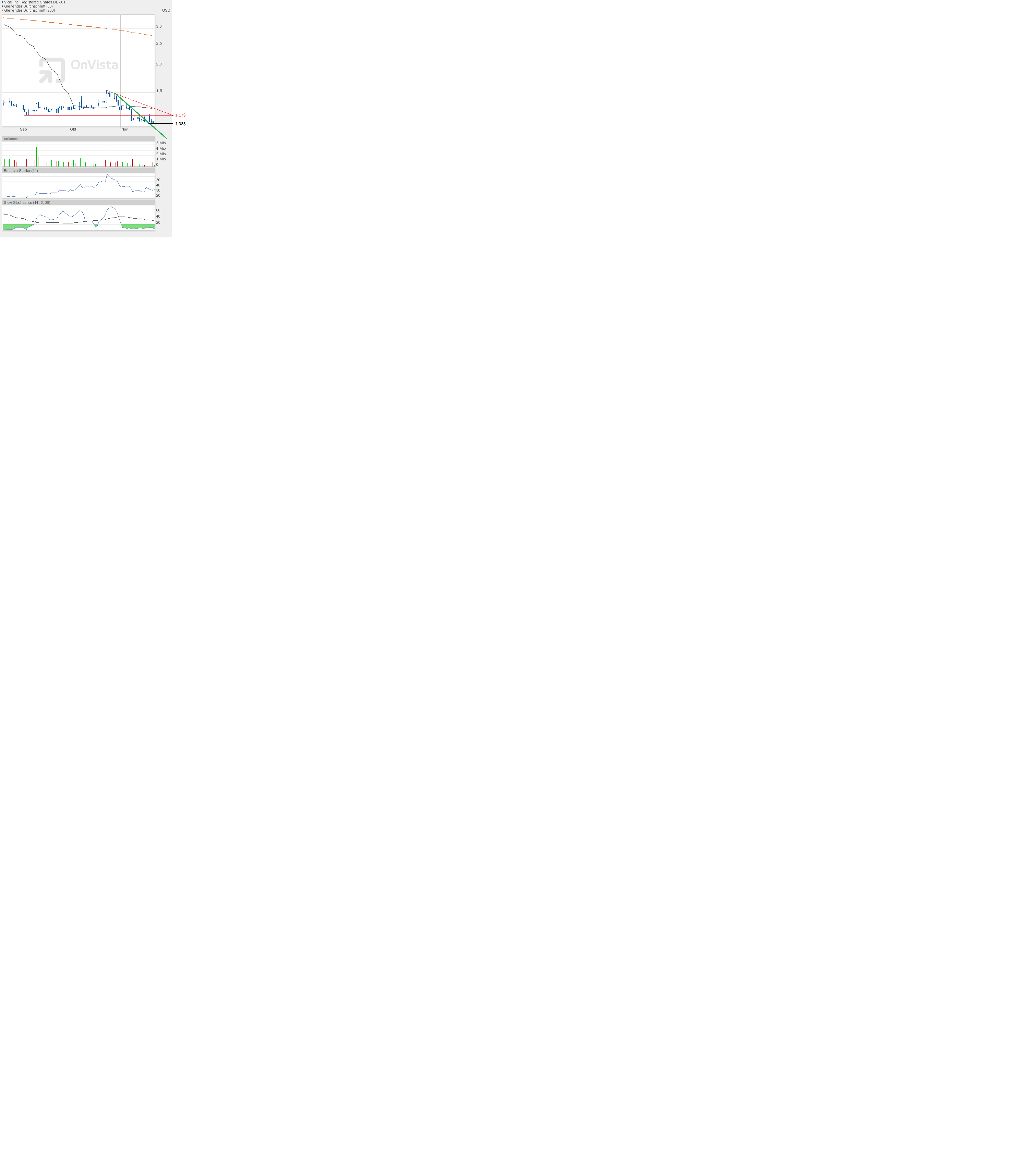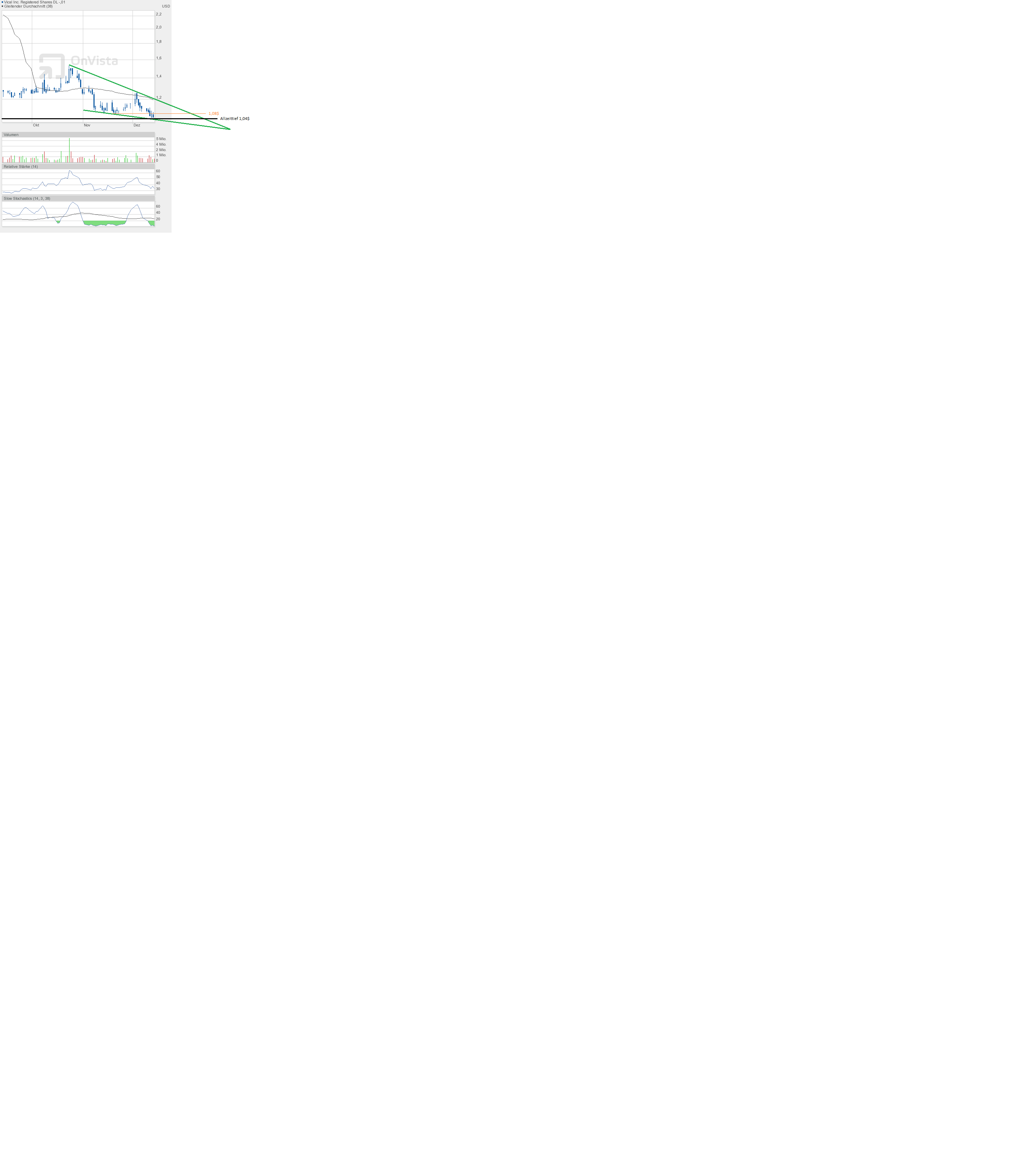 Auch heute gab es nichts zu gewinnen. Vical schließt erneut leicht im Minus, Schlusskurs 1,10$.