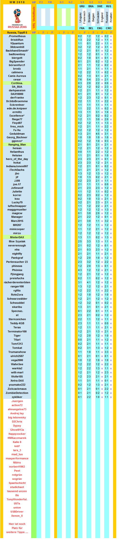 WM 2018, TippR 5 Russia, Viertelfinale