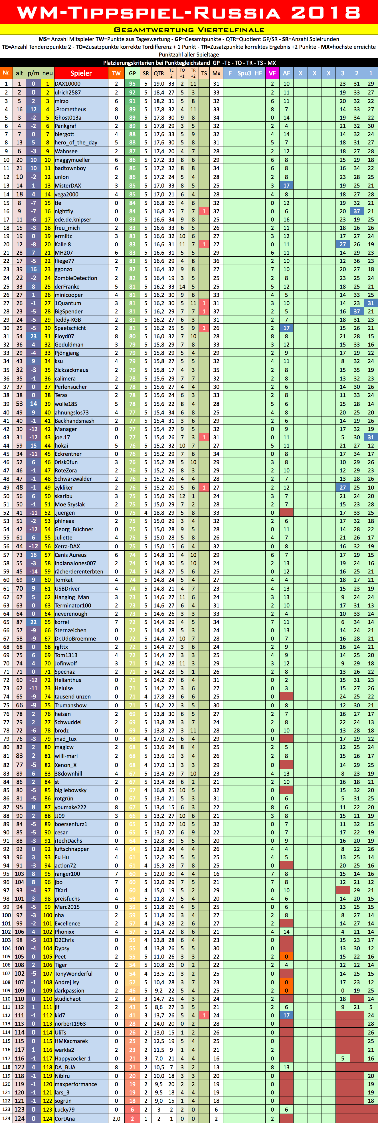WM 2018, Viertelfinale, bisher 102 Tipps...