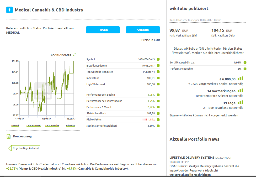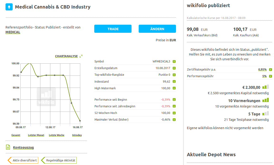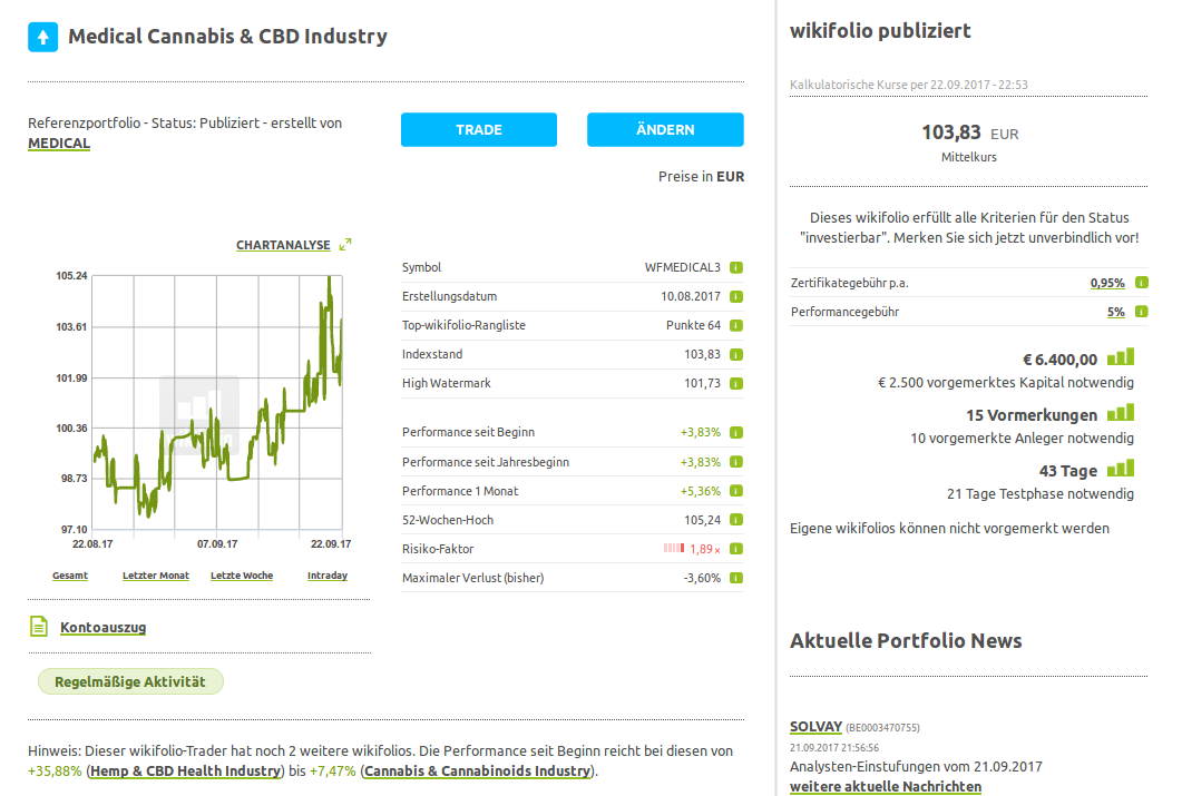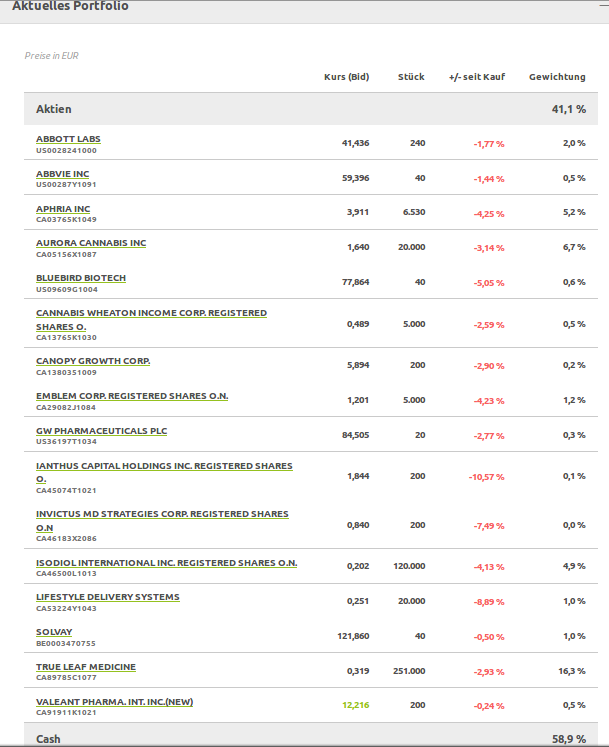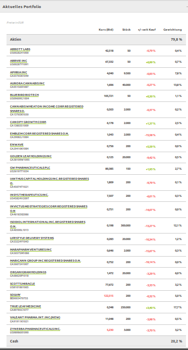 Aktuelles Portfolio "Medical Cannabis & CBD Industry" - Wikifolio (WFMEDICAL3)
