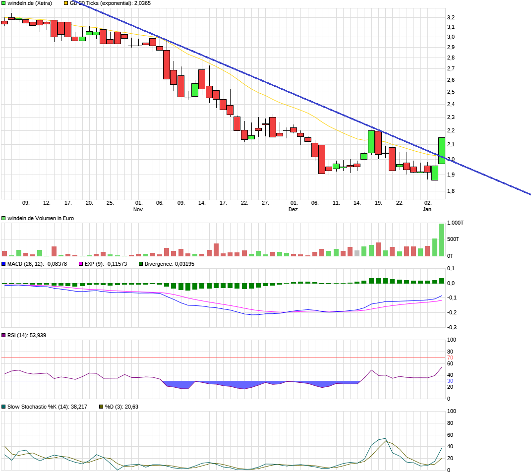 Kurs zieht nach Konsolidierung intraday wieder leicht an, jetzt muss zügig Fahrt reinkommen. Sonst rutschen wir schnell wieder unter 2.00 €...