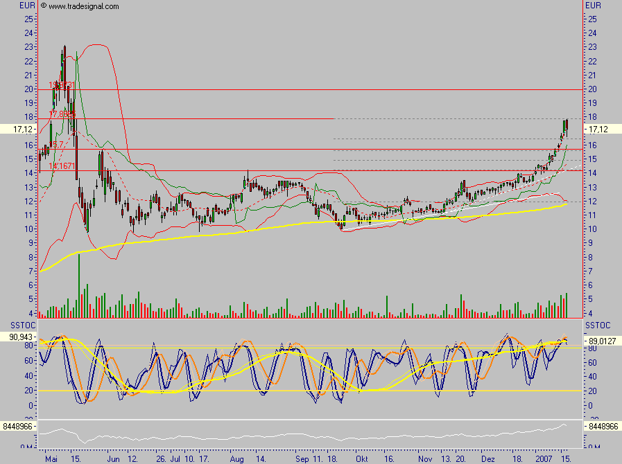Das Unternehmen profitiere vom allgemeinen Trend zu erneuerbaren Energien und vom hohen Ölpreis, der Windenergie an günstigen Standorten wettbewerbsfähig mache. Die Experten würden den Gewinn je Aktie für 2007 auf 50 Cent schätzen. Das mache ein KGV von über 30, was nicht wenig, aber in Anbetracht der starken Zuwächse, in Ordnung sei.