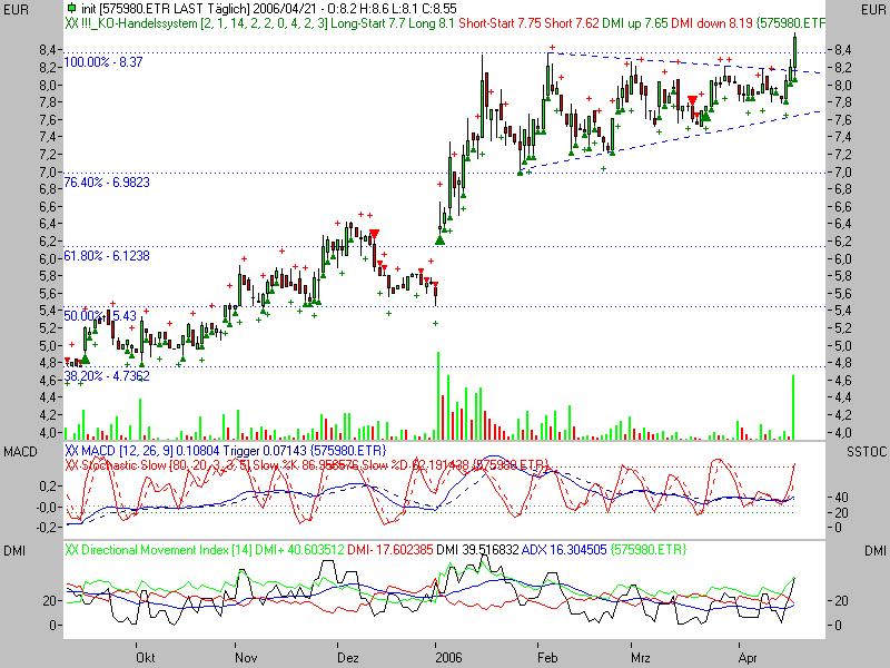 Sind 45 Mio € Umsatz und ein Überschuss von 4,0-4,5 Mio € für 2006 realistisch? Wäre ein KUV von etwa 1,75 und ein KGV von 18,8. Find ich angemessen, aber wenn Init natürlich weitere solche Großaufträge erhält, hat man sicherlich noch gutes Potenzial.