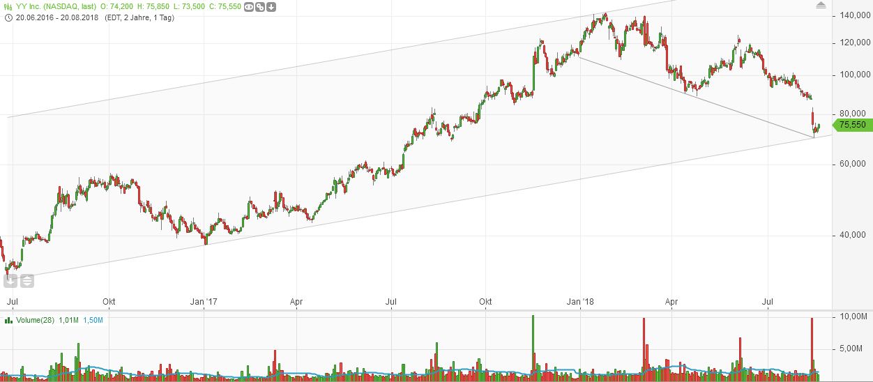 Wir kommen jetzt nochmal deutlich runter und dann werden wir das nächste Quartal sehr viel Freude an YY haben. Der Trend zeigt schön nach oben.