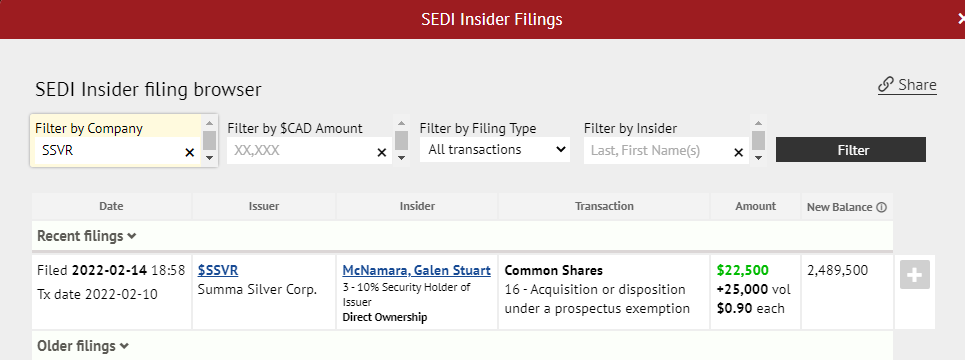 Aber ich mag mich nicht beschweren: Dank Gold_Gräber bin ich bei Summa Silver dabei und die sind auch 20% hoch nach dem Closing.