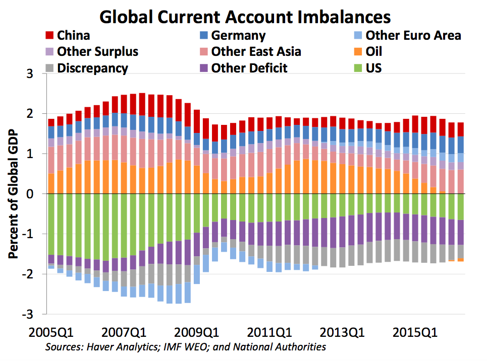 Der Kasus Knacktus für den in einer endlosen Seitwärtsbewegung aufgegangenen grossen Bullmarkt 09 ff scheint in den eskalierenden Handelsungleichgewichten zu finden sein, die eine bereits gegebene Ungleichzeitmässigkeit der einzelnen Volkswirtschaften im Kreditzyklus nochmal verstärken. Im Resultat kommen die US nicht über die postrecessive Phase hinaus, während zB die Eurozone dank der Brüningmedizin nur mühsamst hineinwächst.