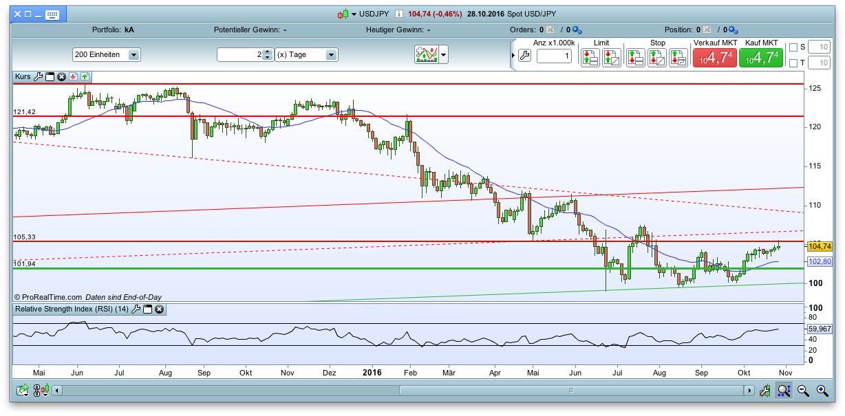 Das Sentiment war und ist vermutlich immer noch extrem Yen short, weil man der Erzählung vom Währungskrieg folgen wollte und will. Insofern würde ich im grossen Fenster nicht gegen den Yen wetten.
