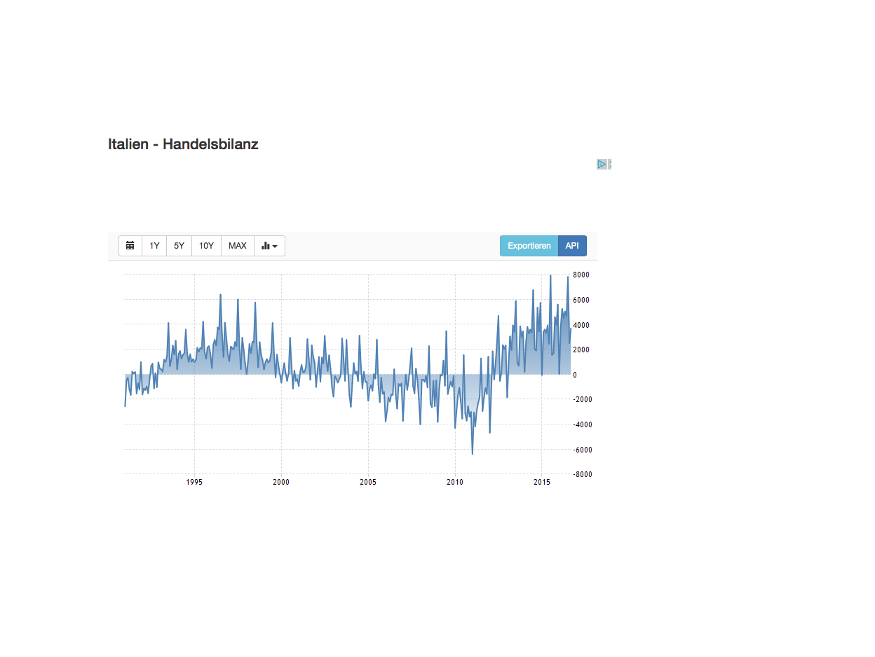 hat sich Italien einen Stand wie vor dem Euro ergeben. Allerdings liegt das an der allgemeinen schlechten wirtschaftlichen Lage im Land. Die Menschen können sich die Auslandsgüter nicht mehr in dem Umfang leisten.