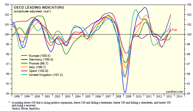 Eurozone - OECD leading Indicators The OECD composite leading indicators­ (CLIs) are designed to provide early signals of turning points (peaks and troughs) between expansions­ and slowdowns of economic activity. CLIs are calculated­ by combining together component series that cover a wide range of key short-term­ economic indicators­. These include observatio­ns or opinions about economic activity, housing permits granted, financial and monetary data, labour market statistics­, informatio­n on production­, stocks and orders, foreign trade, etc.