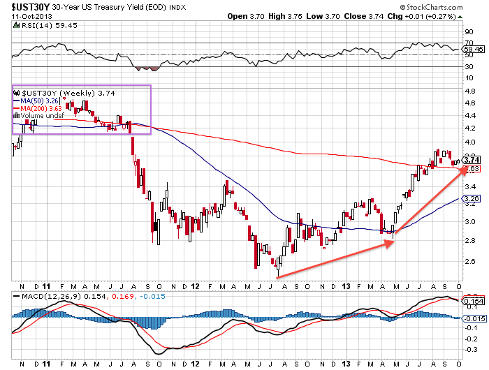 Gestiegen sind die Zinsen ja, aber ob dieser Trend anhält? Schön zu sehen, wie die Eurokrise 2011 die Zinsen am langen Ende wieder gedrückt haben.