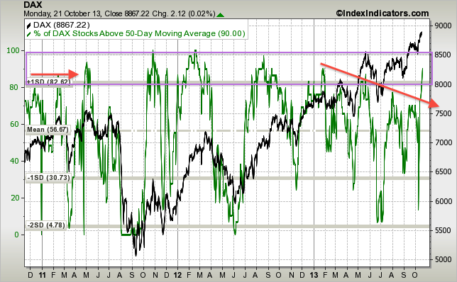 Am Top signalisieren diese Spikes normalerweise Euphorie. Dass die 9000 wie ein Magnet auf viele Börsenteilnehmer gewirkt hat könnte ich verstehen. Aber wie geht es weiter? Rennen die Bullen weiter, weil die Arbeitsmarktzahlen so schwach waren und der Bernake Put weiter zieht?