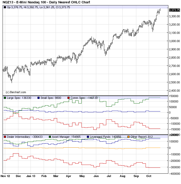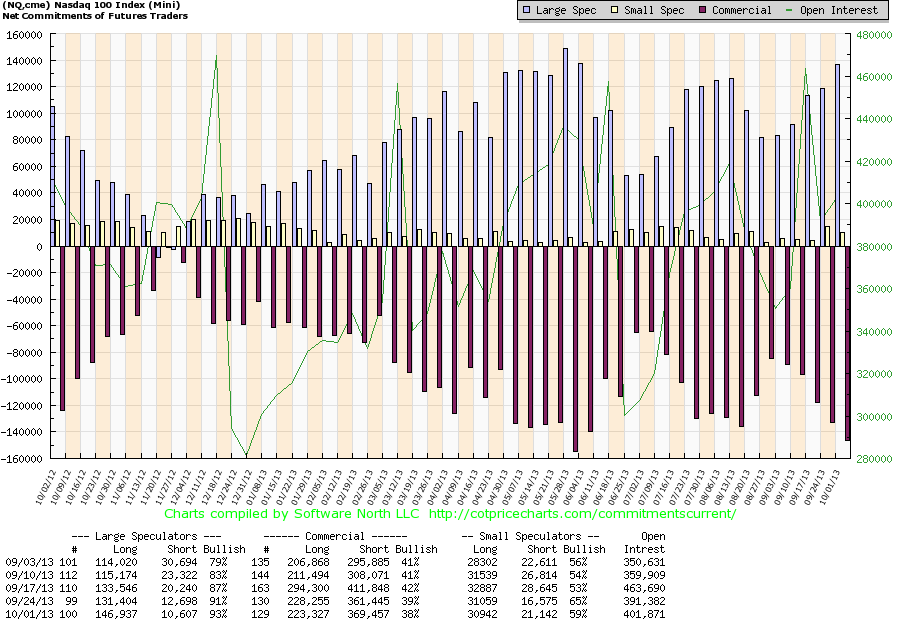 Der Dow ist noch nicht fertig, auch wenn sich das Short CRV stetig bessert. Bei stocks above denke ich, sind Plateaubildungen und Divergencen (die ja irgendwann abgearbeitet werden wollen) aussagefähiger als isolierte Spitzen. Nasdac COT: Large ist konstant im bullischen Extrembereich, Small ist konstant moderat bullish und Commercial hedgt konstat weiter was das Zeug hält. (Anm: Zahlen sind leider 2 Wochen alt)