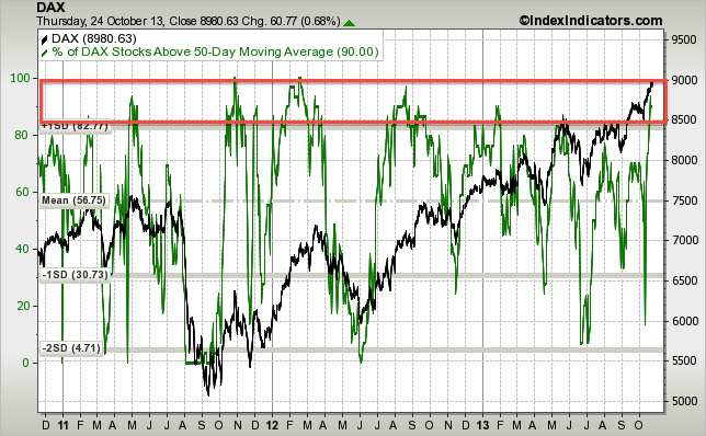 Hausse von immer weniger Aktien getragen zu werden. Allgemein gesehen zeigen sich bärische Divergenzen zu Zeiten der grenzenlosen Börsenanstiege. Innerhalb eines Zeitraums von einem Jahr ist zB. der Dax um 28% gestiegen. Ob die Gewinne da mithalten können?