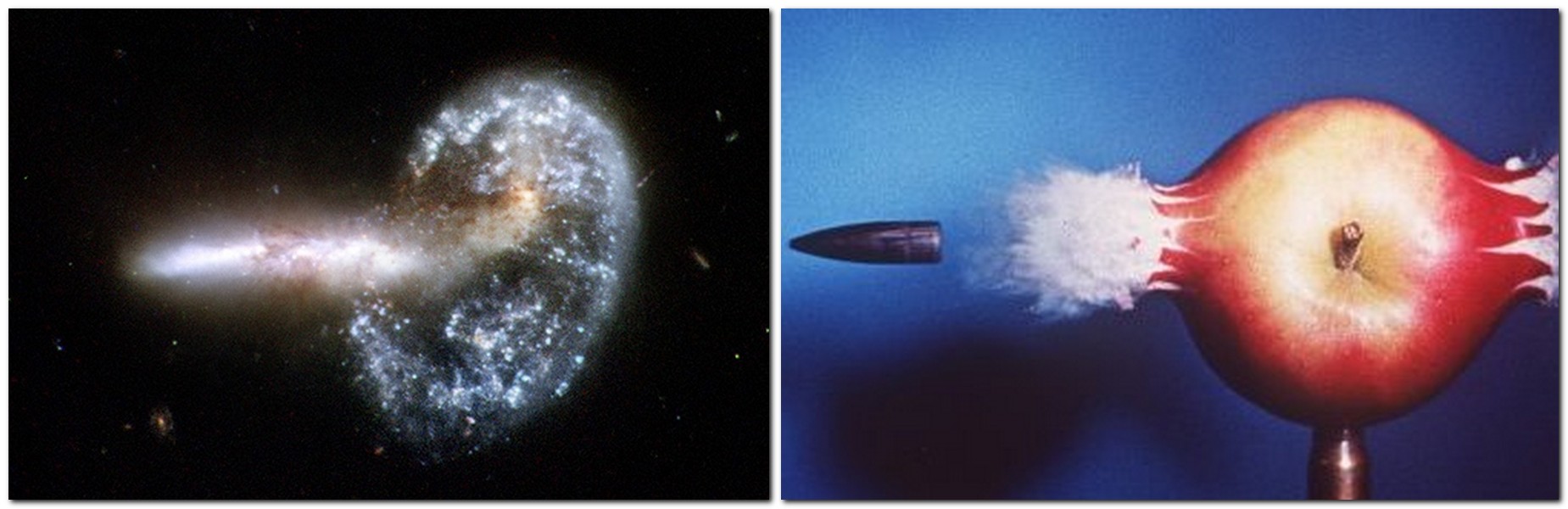 keine Birne, sondern eine Galaxie, die eine andere Galaxie durchquert (foto Hubble, ESA)