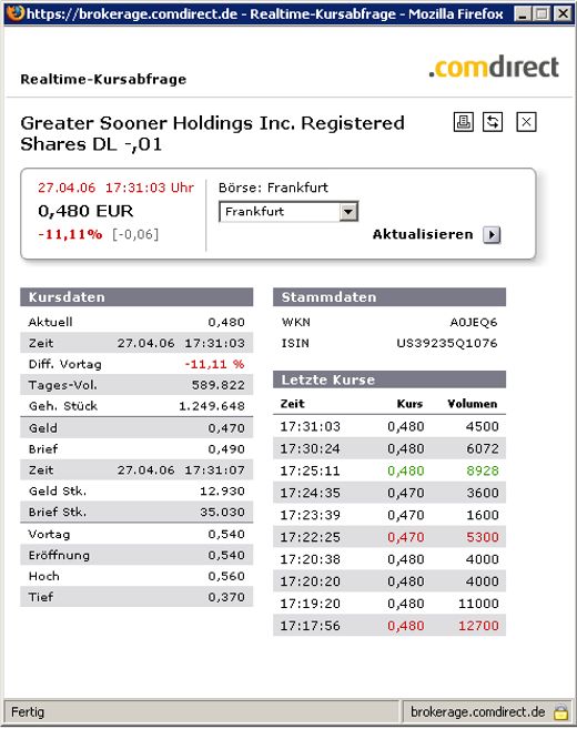 dazu: Wenn ich es richtig in Erinnerung habe war gestern das Volumen um einiges höher als im Amiland. Der Kurs in Deutschland war mal wieder total überteuert, also solltet ihr im Amiland kaufen. Hätte den schönen Nebeneffekt, dass auch dort der Kurs steigen würde. Wie gesagt, die Aktie ist bei uns wegen Invest Inside sehr bekannt, drüben eher nicht so.