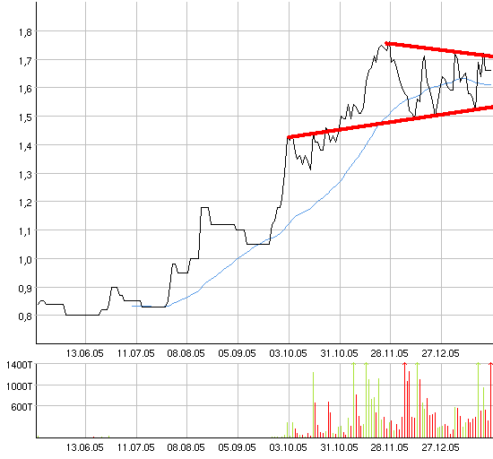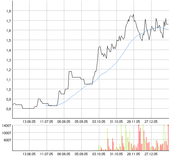 Für das laufende Finanzjahr 2005 würden die Aktienanalysten mit einem EPS von 0,00 USD rechnen. Für das Finanzjahr 2006 sei ein EPS-Wachstum auf 0,37 USD zu erwarten. Die EPS-Prognose für das Finanzjahr 2007 laute unterdessen auf 0,90 USD. Somit lasse sich ein 2006-KGV von 5,6 sowie ein 2007-KGV von 2,3 ermitteln. Das Kursziel auf Sicht von zwölf Monaten liege bei 2,75 USD.
