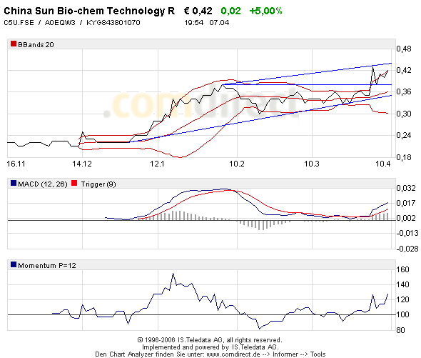 empfiehlt CHINA SUN BIO-CHEM in der Ausgabe Nr 7 vom 10.April 2006 !!!