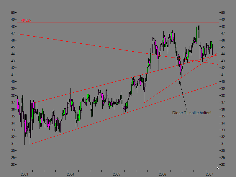 Die 43€ sollten halten, dann wird's angesichts der Datenlage und Aussichten auch weiter steigen. Will sagen: Wer über einen Einstieg nachdenkt, könnte diese Überlegung mit einbeziehen.