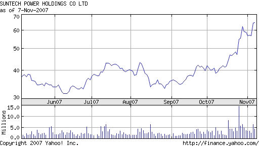 Suntech Power ist einer der weltweit führenden Solarkonzerne mit einem Umsatz 2006 von knapp 600 Mio. $ bei einem Nettogewinn von 106 Mio. $. Das beeindruckende an dem Unternehmen ist aber das Wachstum: der Umsatz legte letztes Jahr um satte 168% zu, der Gewinn nach meiner Berechnung aus den einzelnen Quartalsberichten (siehe unten) um 127%, laut offizieller Angabe im Geschäftsbericht sogar um 275% - hab jetzt selbst leider nicht rausfinden können, woher die Differenz kommt, aber so oder so beeindruckende Zahlen!