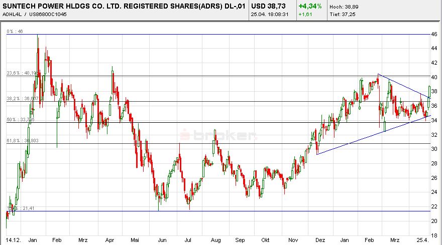 Suntech Power wird von CIBC World Markets weiter mit Sector Outperform bewertet. Das Kursziel von $40 auf $45 angehoben.