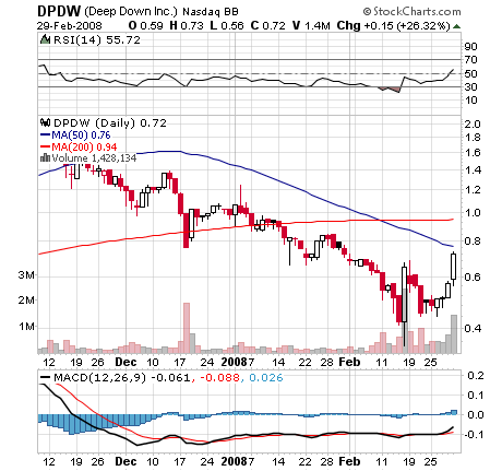 Deep Down, Inc. (OTCBB:DPDW - News) is an installation engineering and management company focused on the offshore segment of the energy industry. It provides installation management, engineering services, support services, custom fabrication and storage management services for the offshore subsea control, umbilical, and pipeline industries.